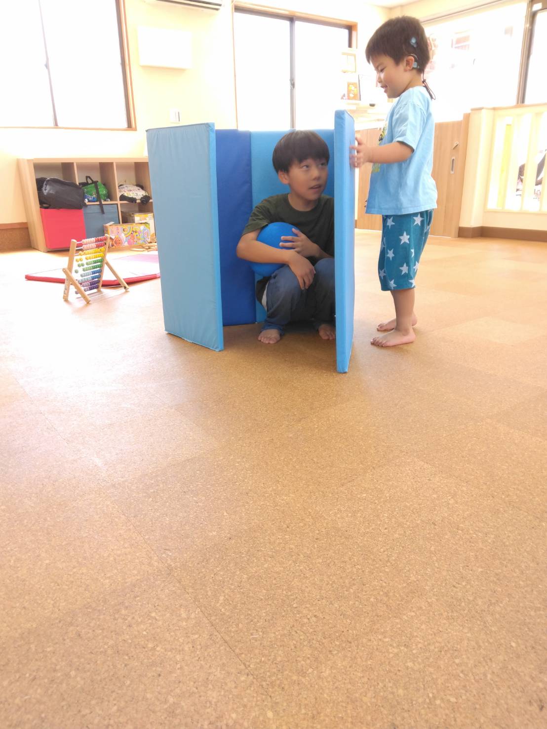 写真左のお子さんは、最近まなびやに通い始めたばかりですが、もうすっかりなじんでいます。