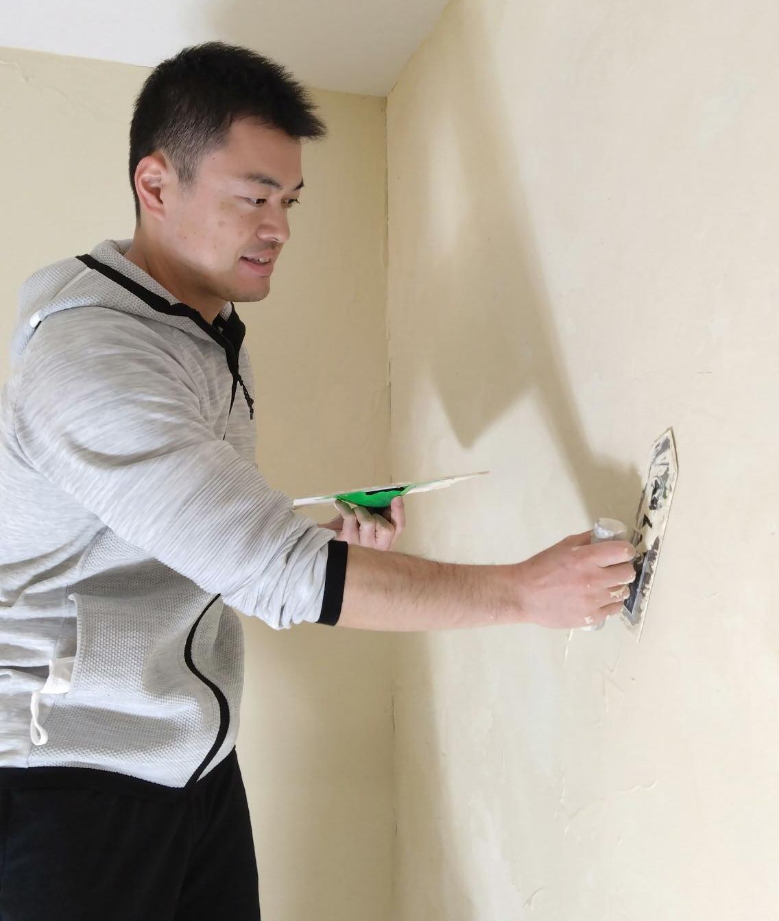 まなびやの室内の壁は、シックハウス症候群、化学物質過敏症などに配慮した安心の国産自然素材を使用しています。直接手で塗れるほど安全な塗料で、抗菌、消臭、空気の清浄機能の高さが証明されています。施設の設計士であるアド・バリュー・ライフ株式会社代表の迫田さんが、シックハウス症候群、化学物質過敏症などに悩む保護者様からの相談を受ける中でこの健康塗料に出会ったそうです。大切なお子様、保護者様、従業員の健康を考え、安心できる室内環境を確保するために導入しました。写真のように、代表も壁塗りをしました。うまく塗れていないところは、ド素人の私のせいですが、それはそれで味があって好きです。